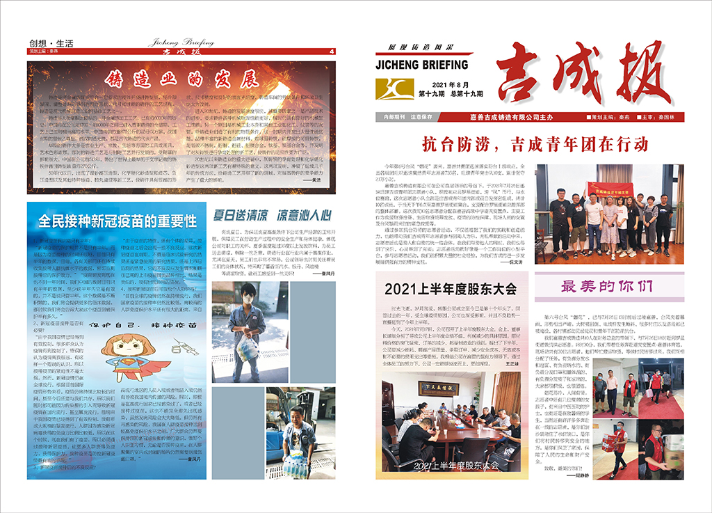 嘉善吉成鑄造有限公司位于杭嘉湖三角洲,占地面積17000平方米,建筑面積19000平方米。主要從事:球墨鑄件、灰鐵鑄件的生產和銷售。